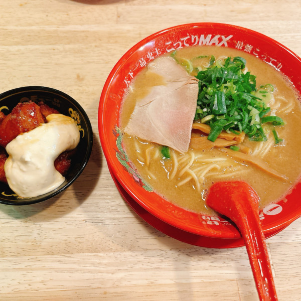 福岡県福岡市博多区博多駅東3-1-6マップで見るそれほどギトギトでもない、さらさらなスープで、ザ・豚骨!っていう感じがたまらない。麺もツルツルで風味も良い。思わず替玉!自分でクラッシュするニンニクとカラシ高菜に紅しょうがという味変ラインナップもたまらん。